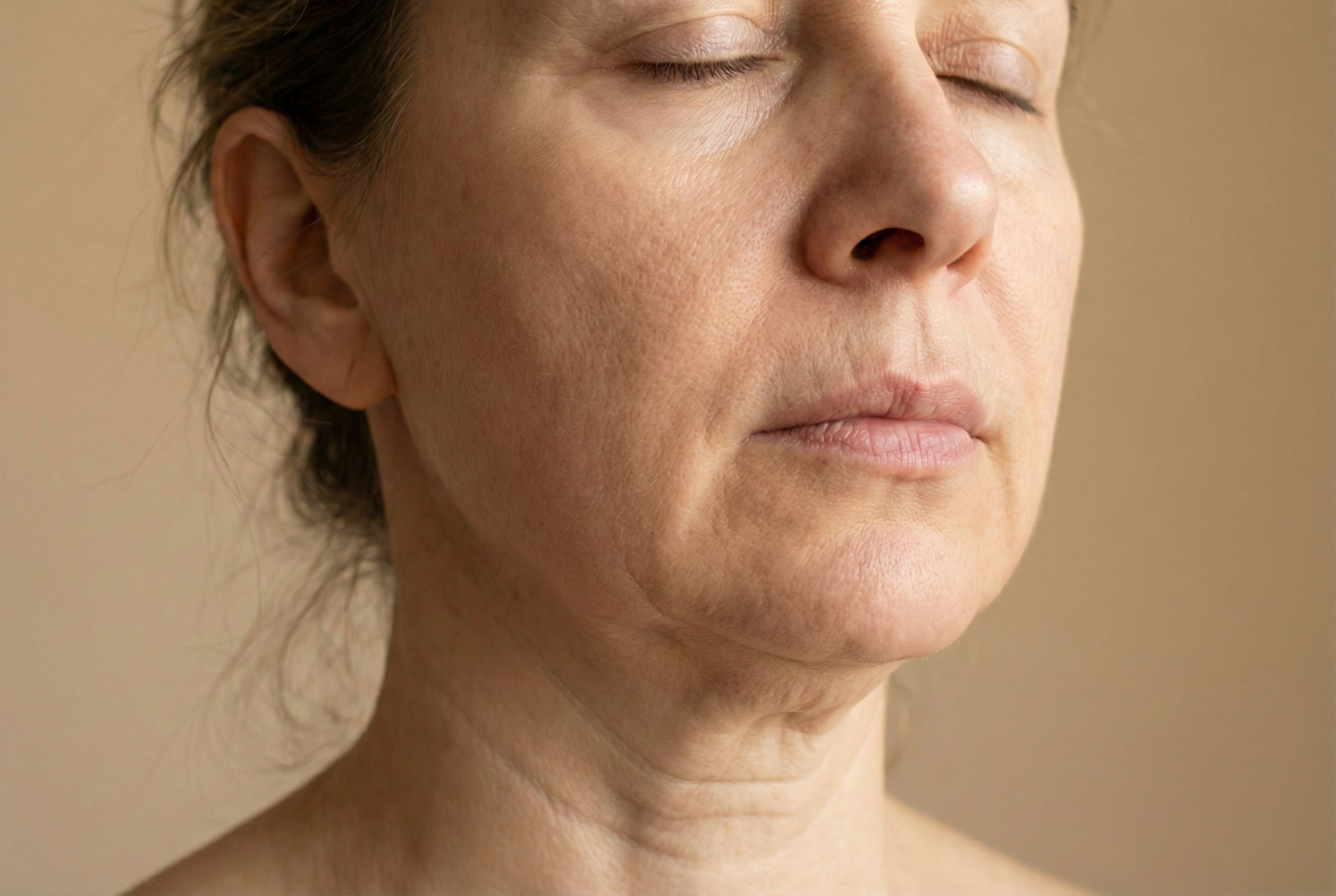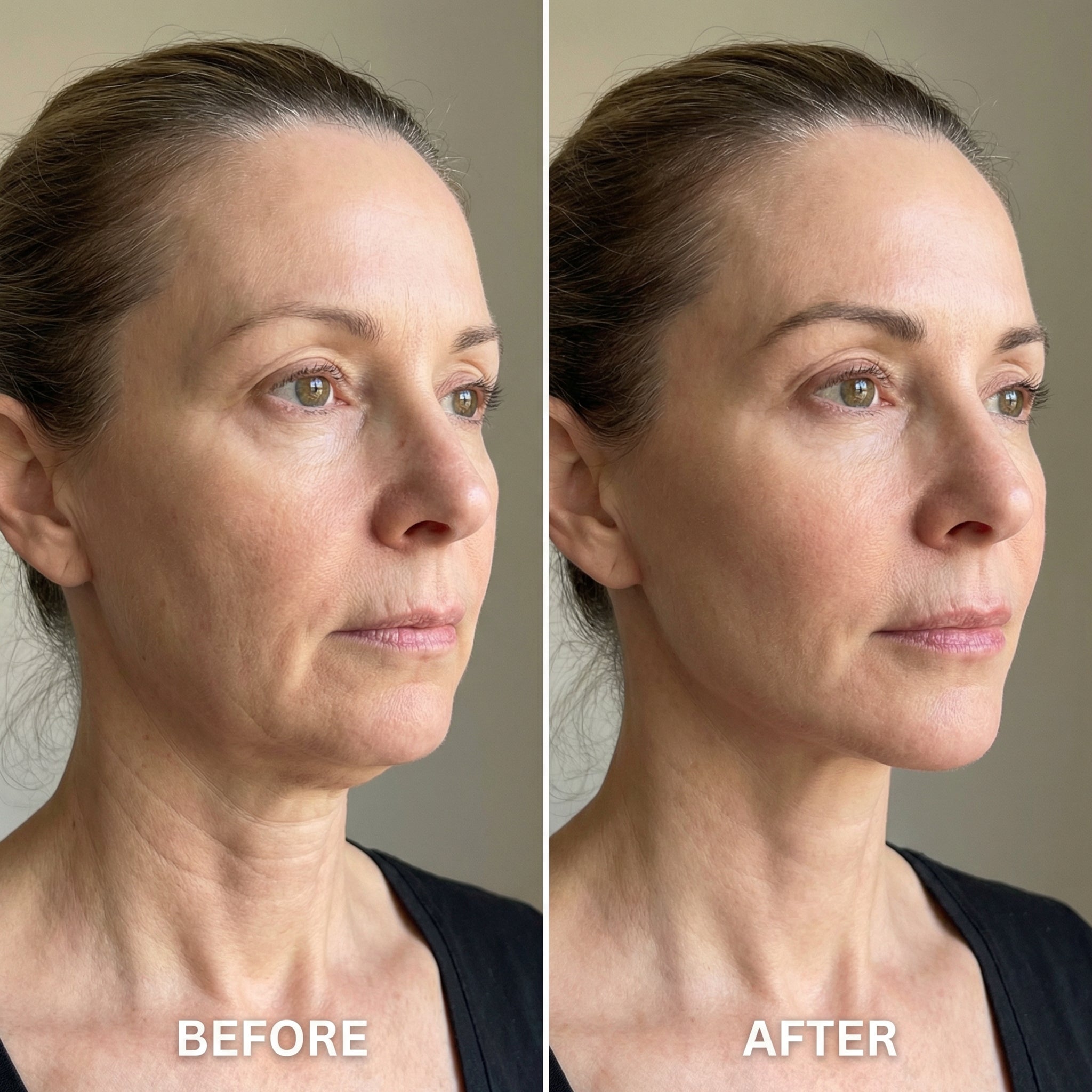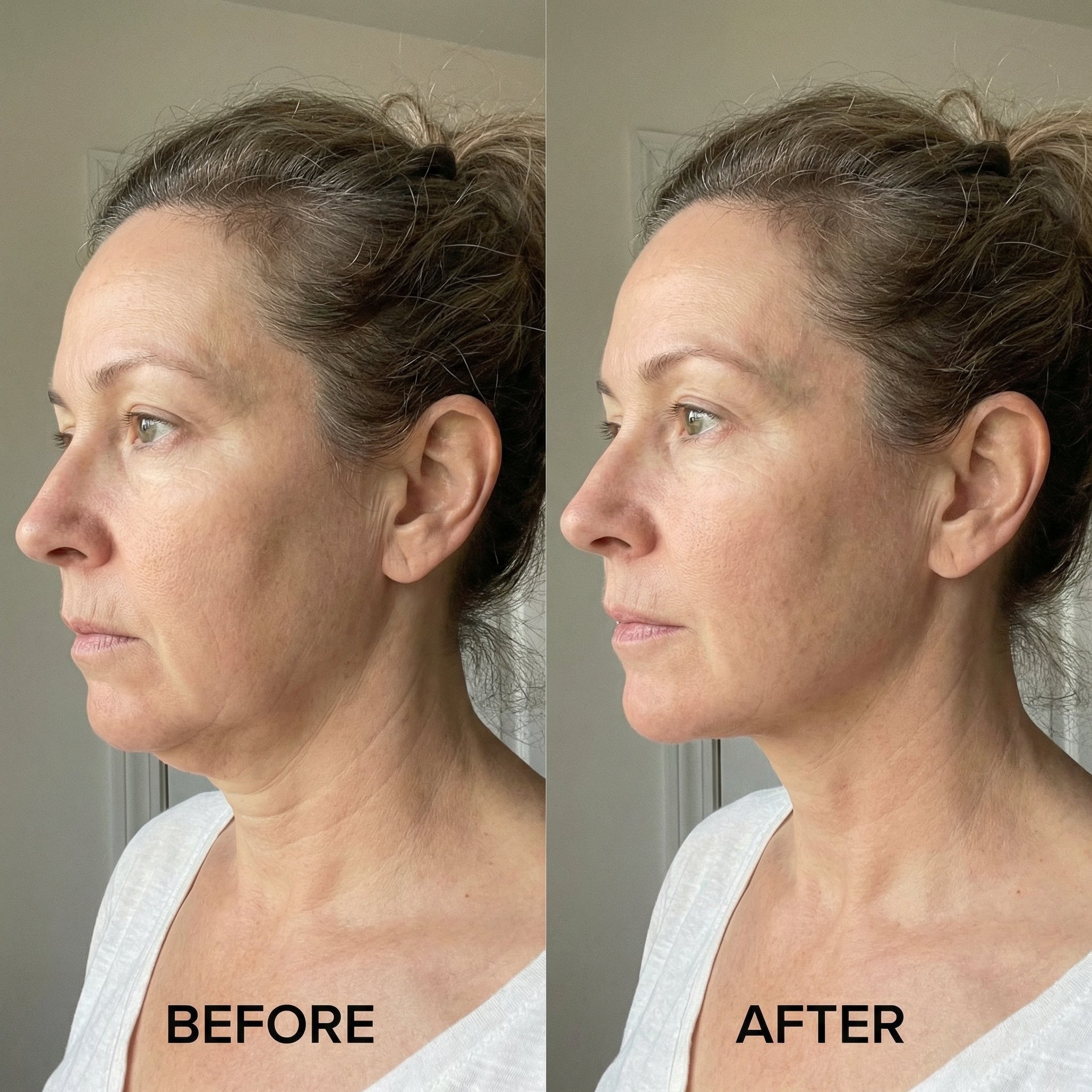 After 40, estrogen drops and collagen production falls off a cliff. Women lose up to 30% of their skin's collagen in the first five years of menopause alone. The deep tissue that once held your jawline firm, lifted, and defined simply stops rebuilding itself at the rate it breaks down.