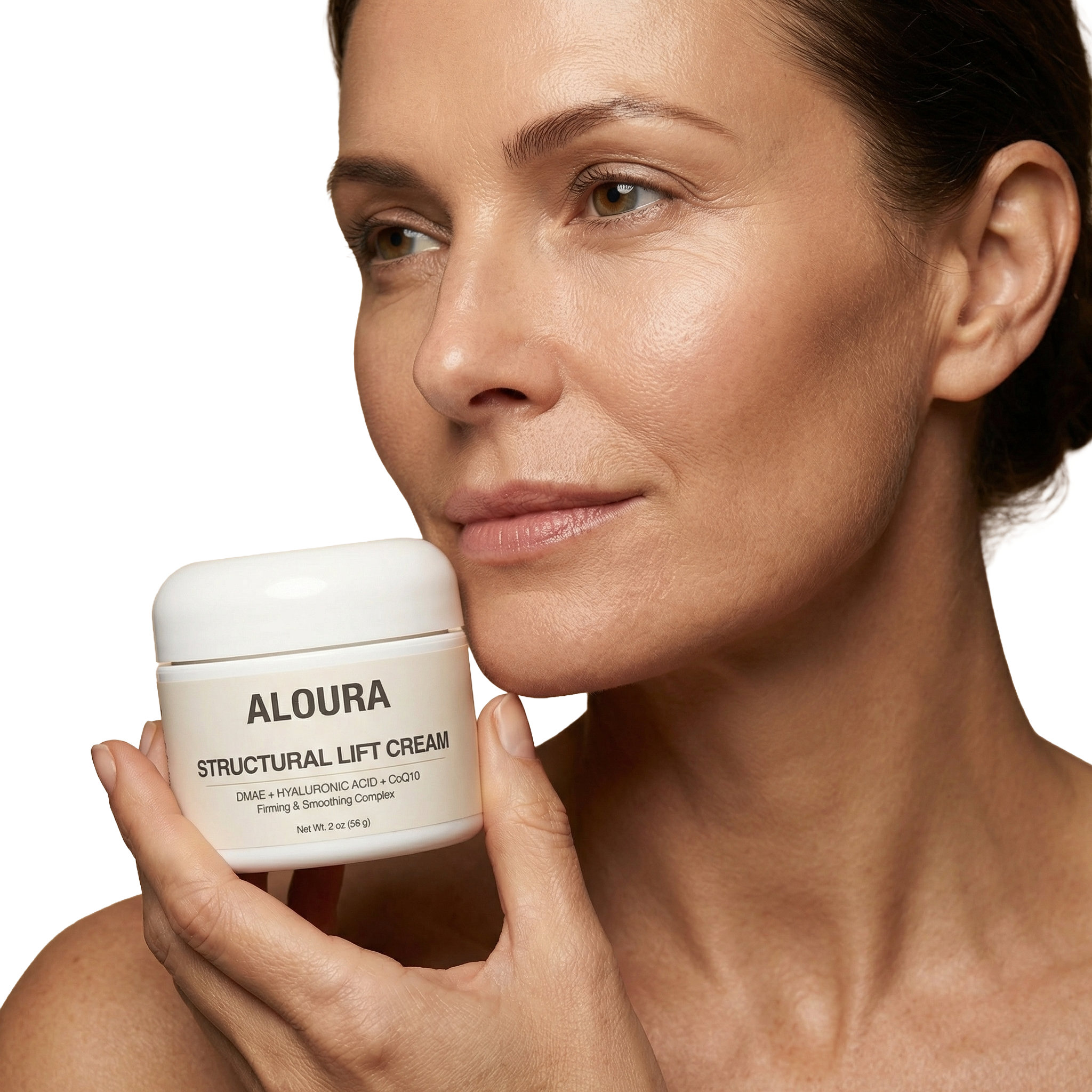 Not all DMAE is created equal. Most creams contain trace amounts β enough to list on an ingredient label, not enough to reach the structural layer. Aloura's formula uses a concentrated DMAE complex specifically calibrated for deep tissue firming along the jawline and lower face. Combined with Hyaluronic Acid for skin density and CoQ10 for cellular repair, it creates a synergistic effect that low-concentration DMAE creams simply cannot replicate.