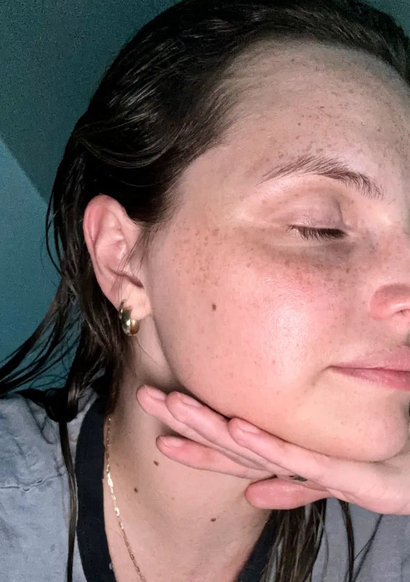 Massage using slow, upward motions along the jawline and neck until fully absorbed.